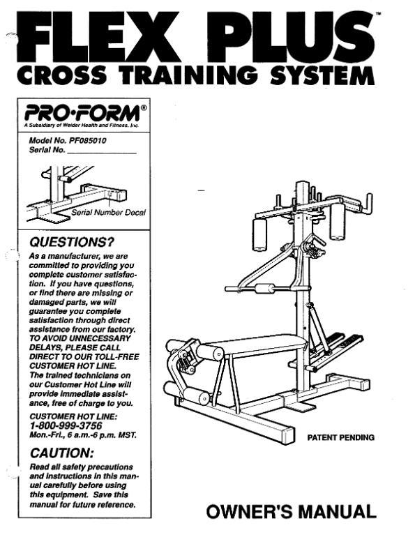 Proform Flex - Pf085010 Strength System Owner Manual 104913
