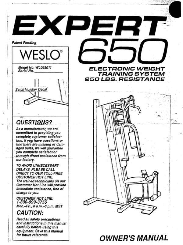 Weslo Expert - Wl065011 Strength System Owner Manual 107569