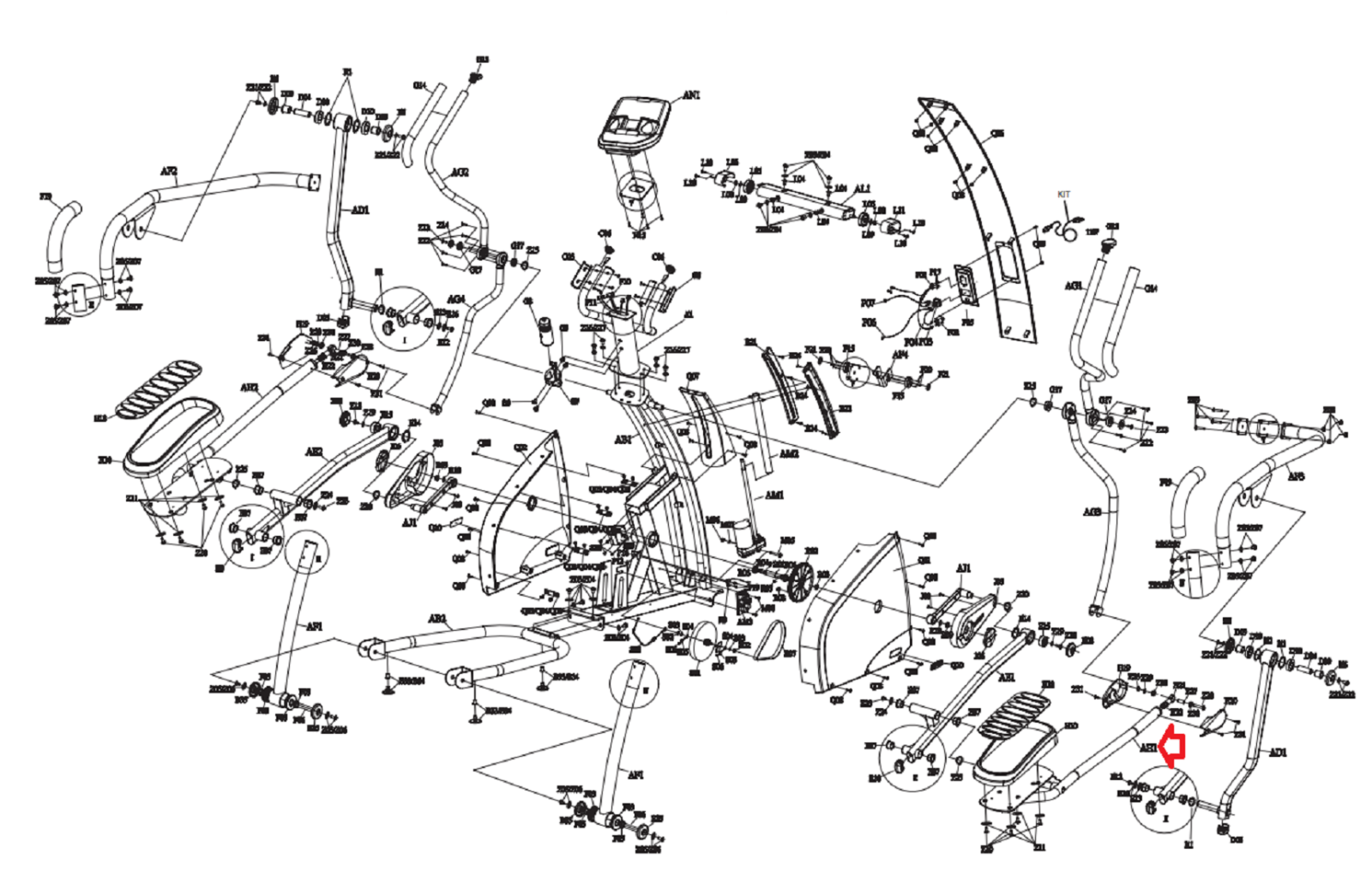 AFG 18.0AXT EP212 18.1AXT EP258 Elliptical Right Link Arm Set 1000094370