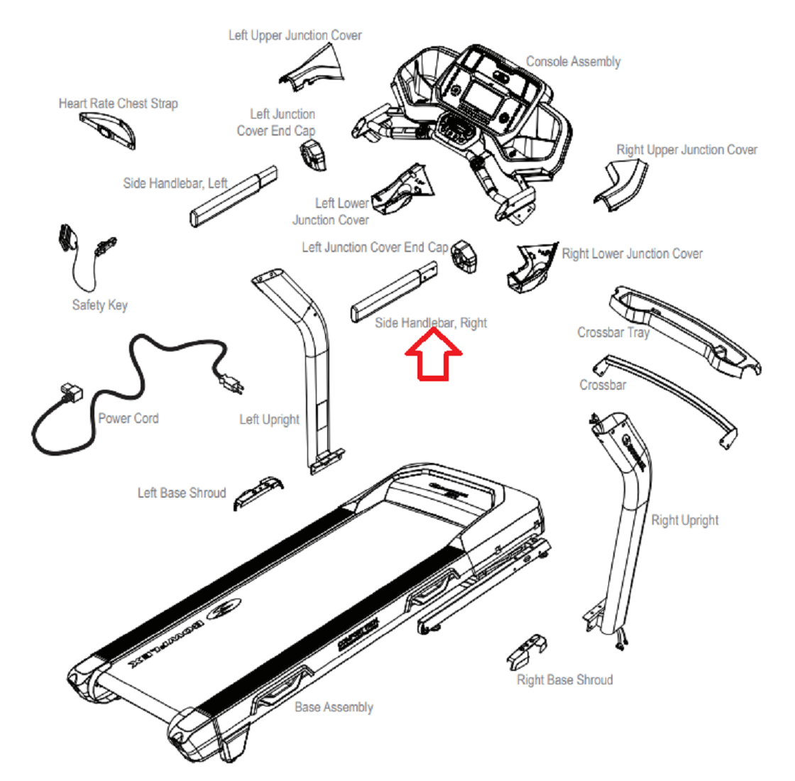 Bowflex BXT6 - Black Treadmill Right Handlebar Insert Weldment BXT6-RHIW