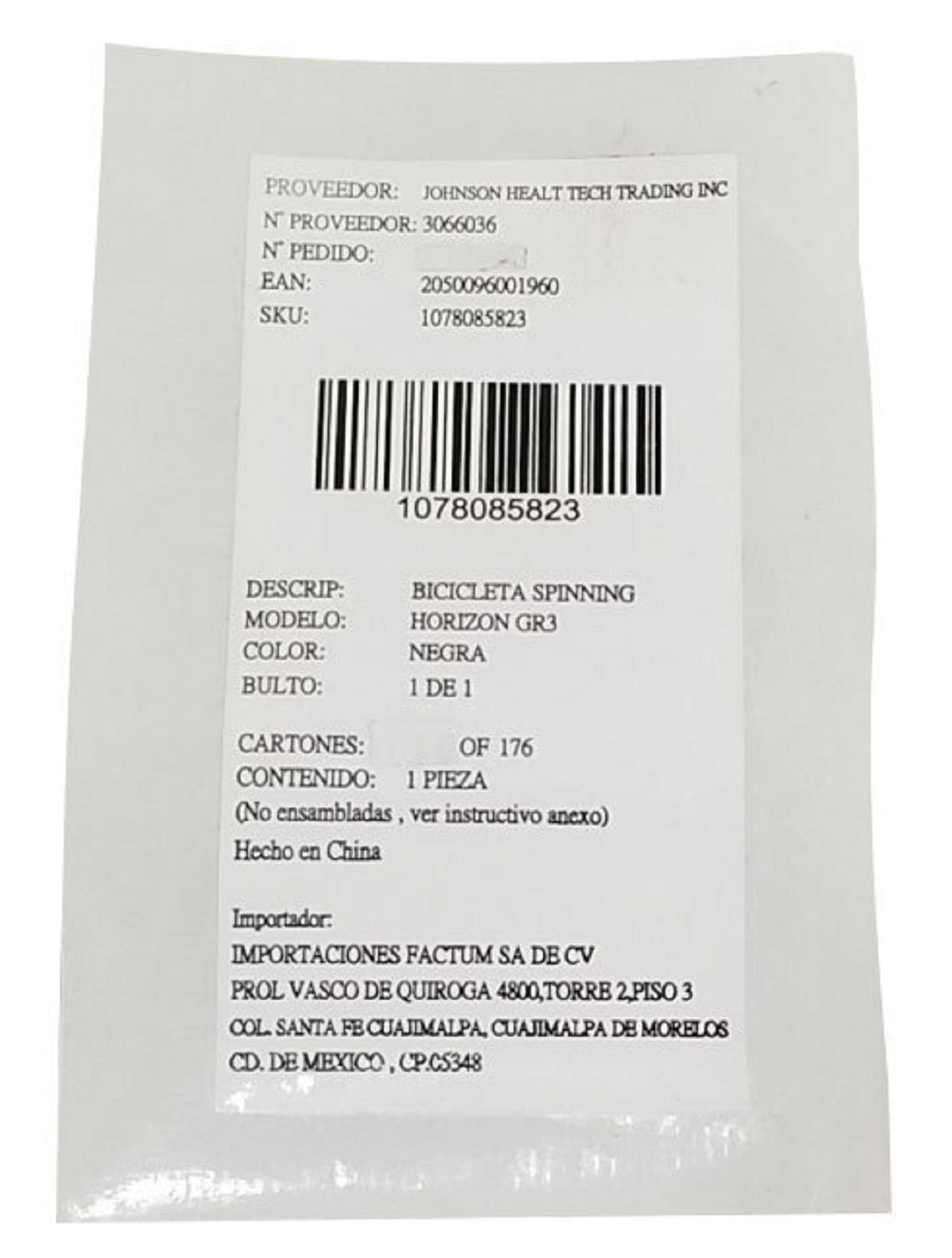 Horizon Fitness FC060 Stationary Bike Shipping Label 2 1000436898