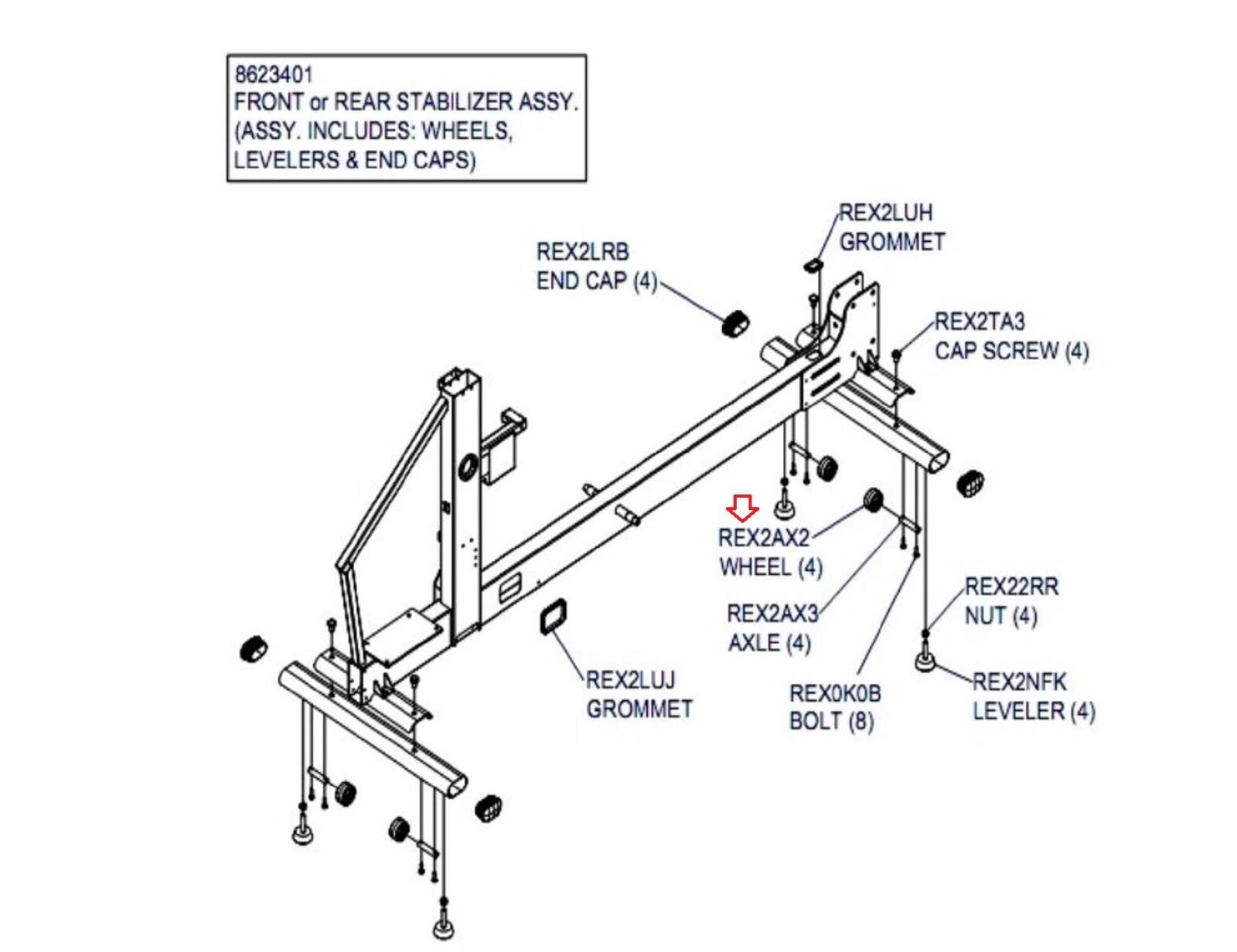 Life Fitness E5 X5 X7 PowerMill 95PS X8 Elliptical Floor Roller Wheel REX2AX2