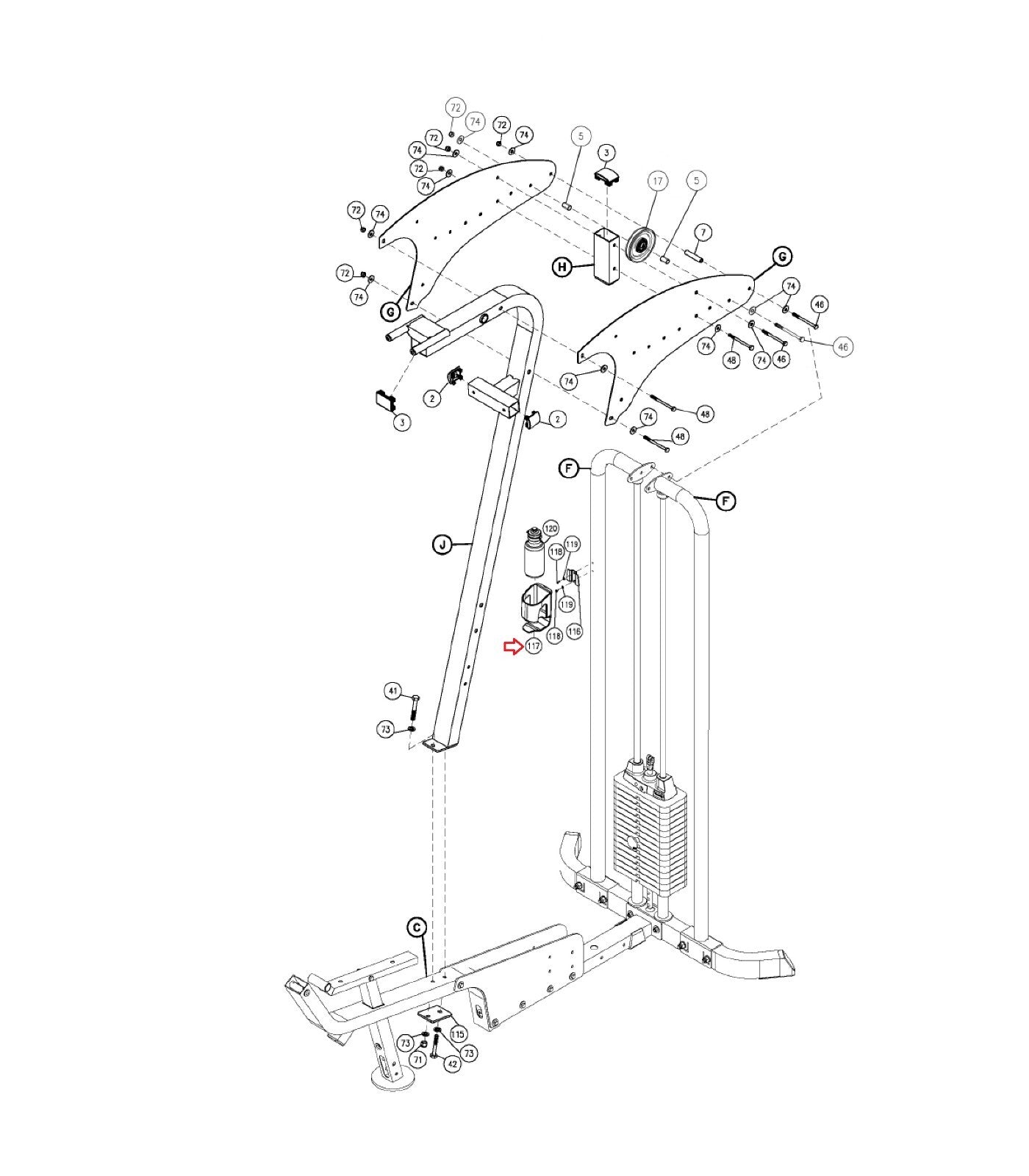 Bodysolid G1S G2B G3S G4I G5S Strength System Water Bottle Holder JWBH