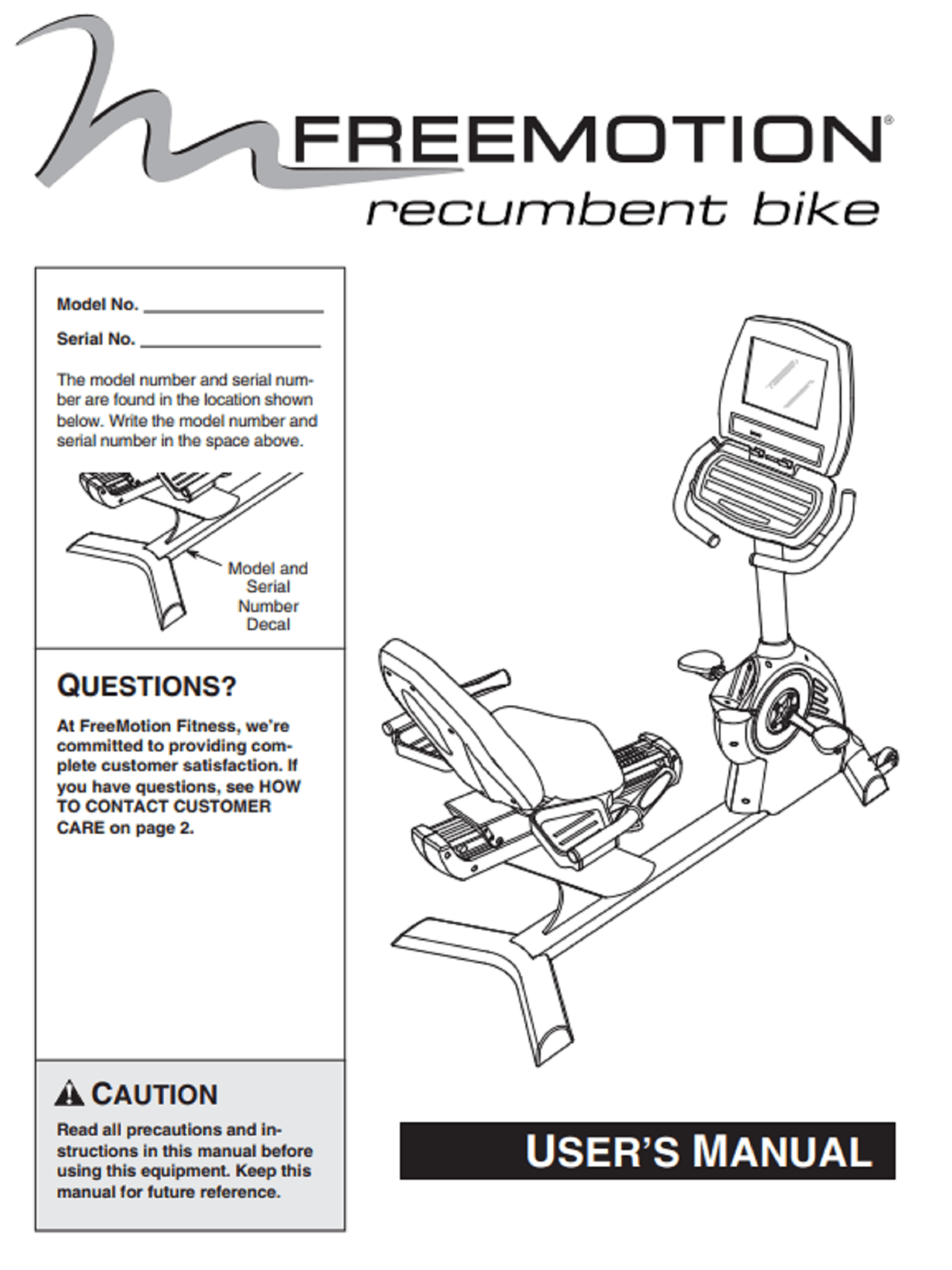 FreeMotion FMEX2256P-FR0 FMEX2506P-FR0 Recumbent Bike Owner Manual CC7226