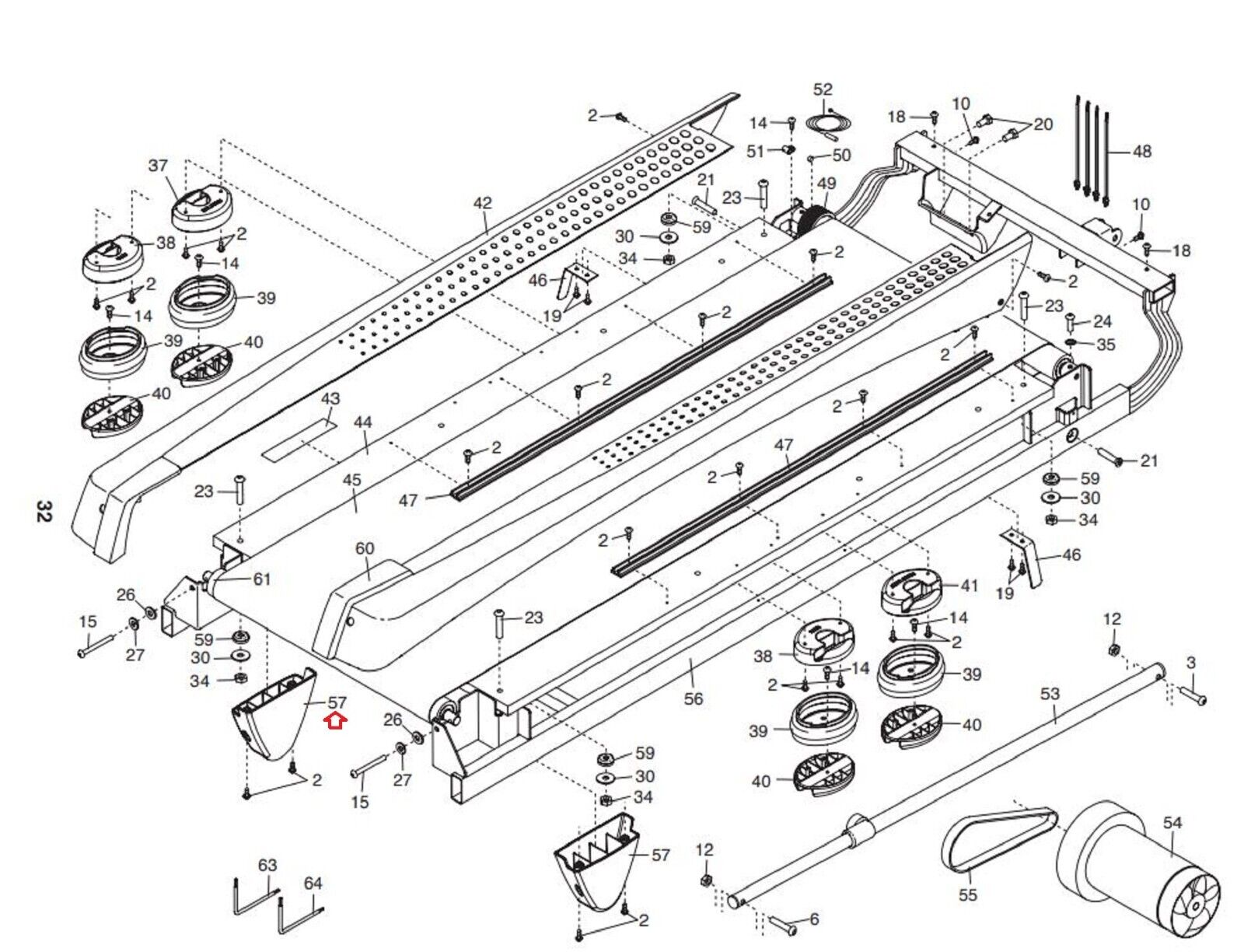 Epic HealthRider NordicTrack Proform Reebok Treadmill Rear Foot 301343