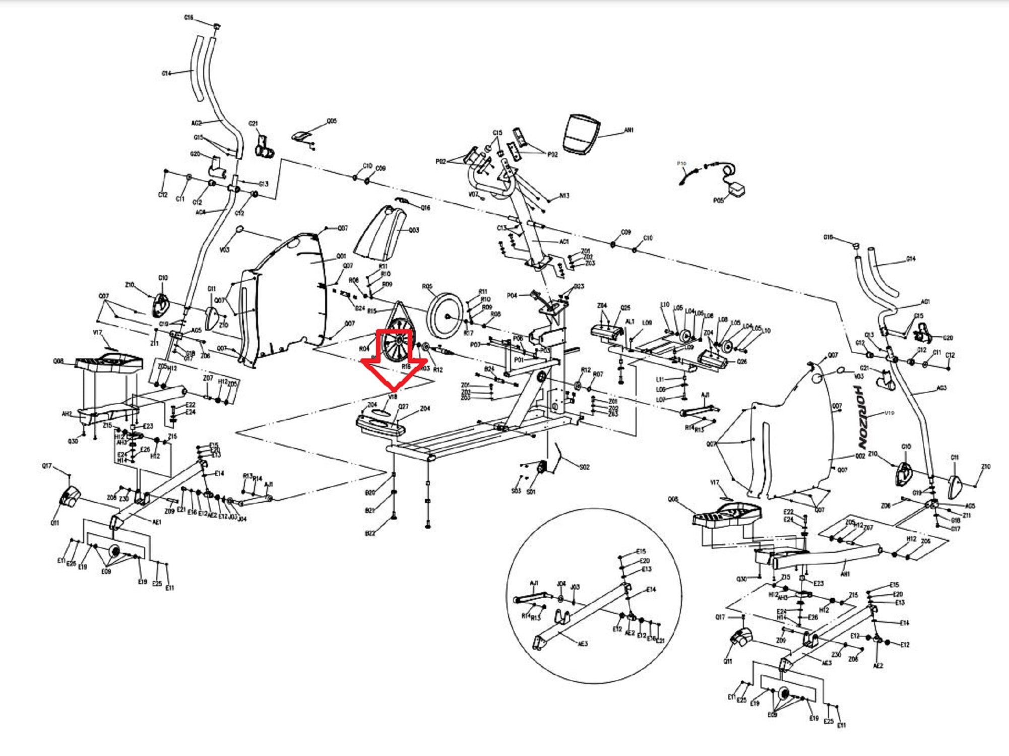 Horizon Fitness LS625E - EP132C Elliptical Decal Rear Stabilizer 039096-AX