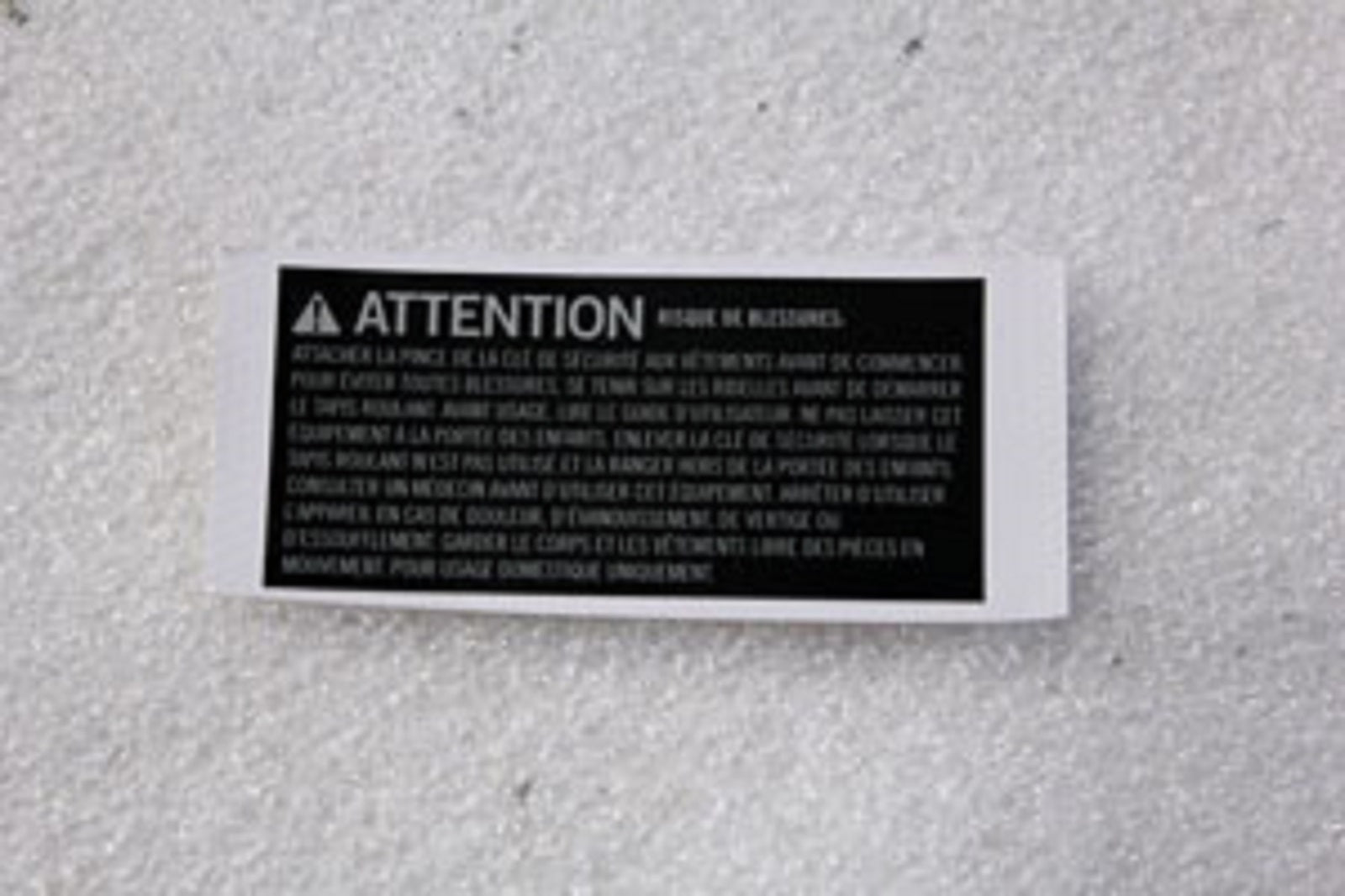 Horizon AFG Fitness Livestrong Treadmill Console Warning Label French 1000216760