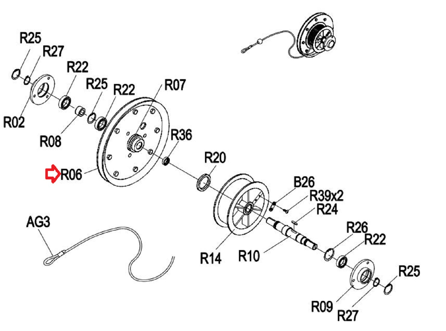 Horizon Matrix Fitness Oxford 5 - AR50B W1x-G4 - AR09 Rower Rope Pulley 003840-B