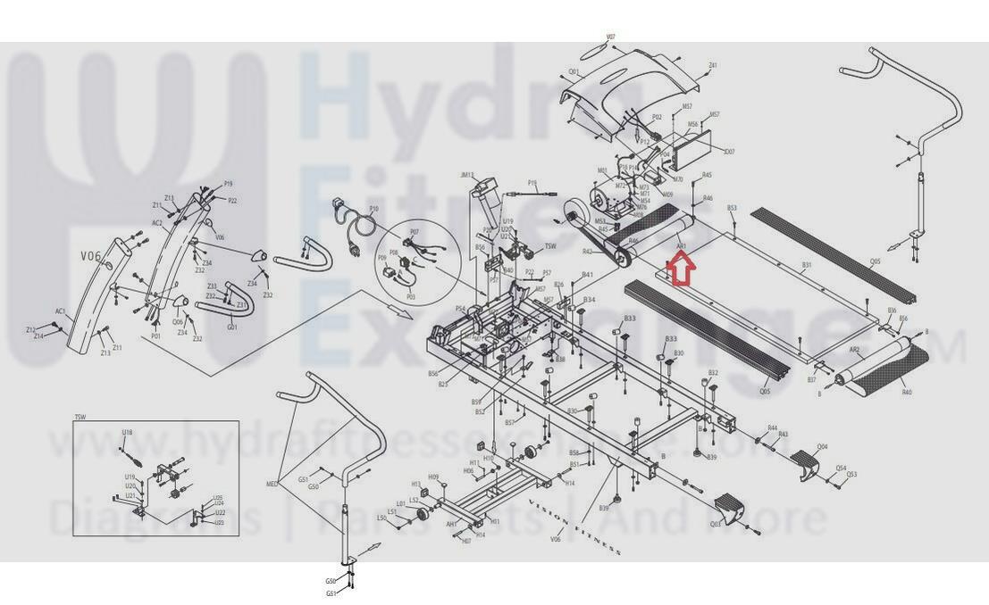Horizon Vision Fitness Treadmill Front Rear Roller 014123-F
