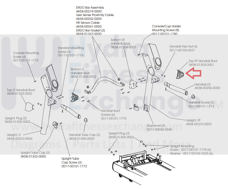 Life Fitness 93T 95T 97T T9e Treadmill Top Handrail Boot Cover 0K58-01303-0001-hydrafitnessparts
