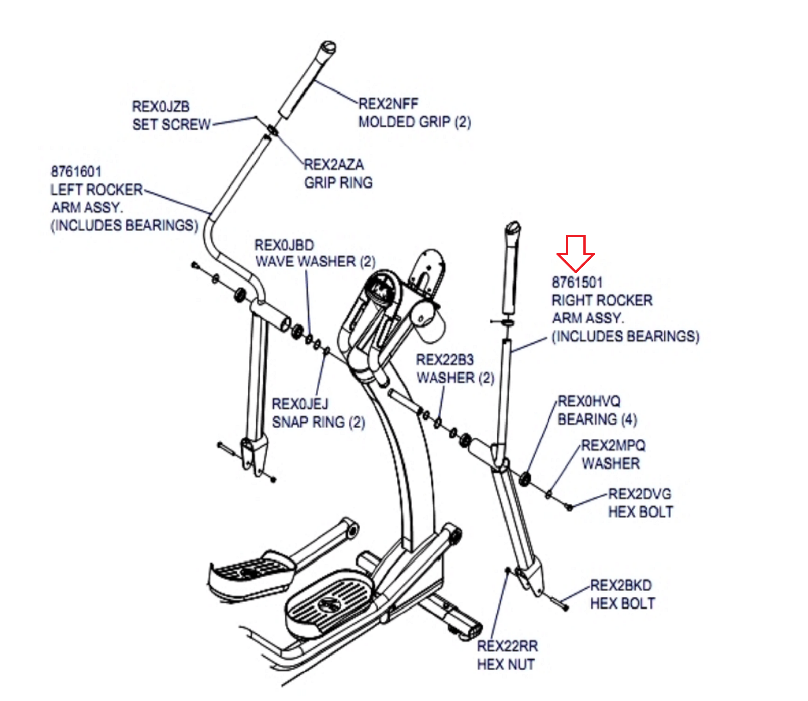 Life X8 X8-XX00-0103 X8-XX0X-0103 Elliptical Right Handlebar Assembly 8761501