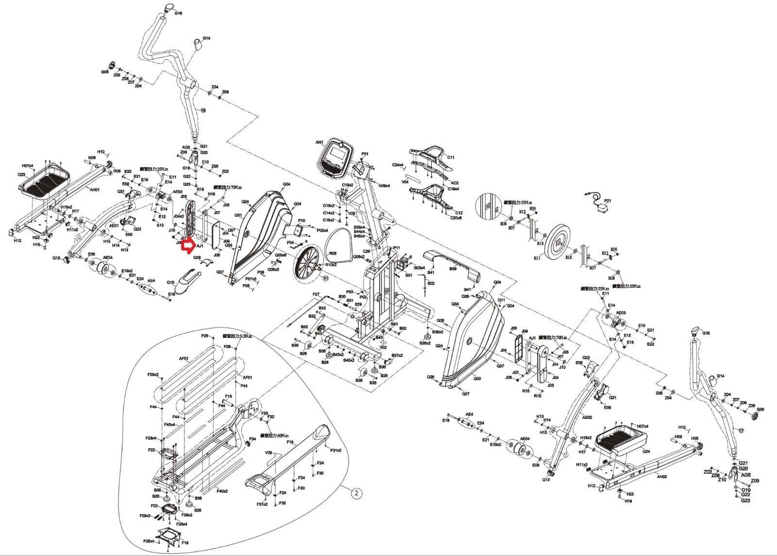 AFG Horizon Vision Fitness Livestrong Elliptical Crank Arm Assembly 1000201410