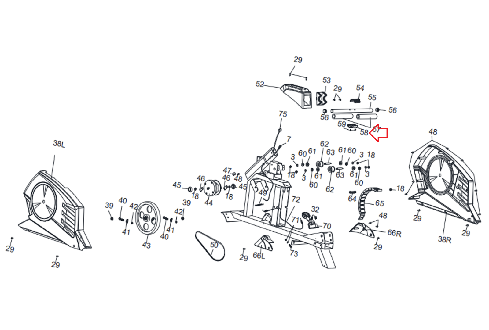 Marcy X-3570 Rower Handlebar Bottom Cover Cover-5975