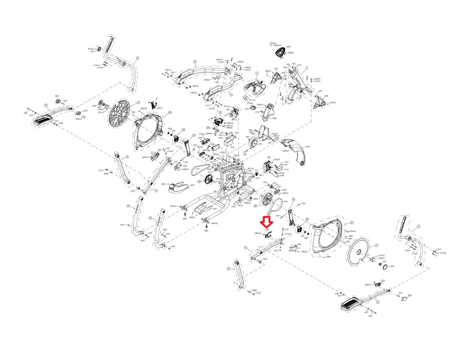 Matrix Commercial Fitness Elliptical Swim Arm Inside Cover 0000095179