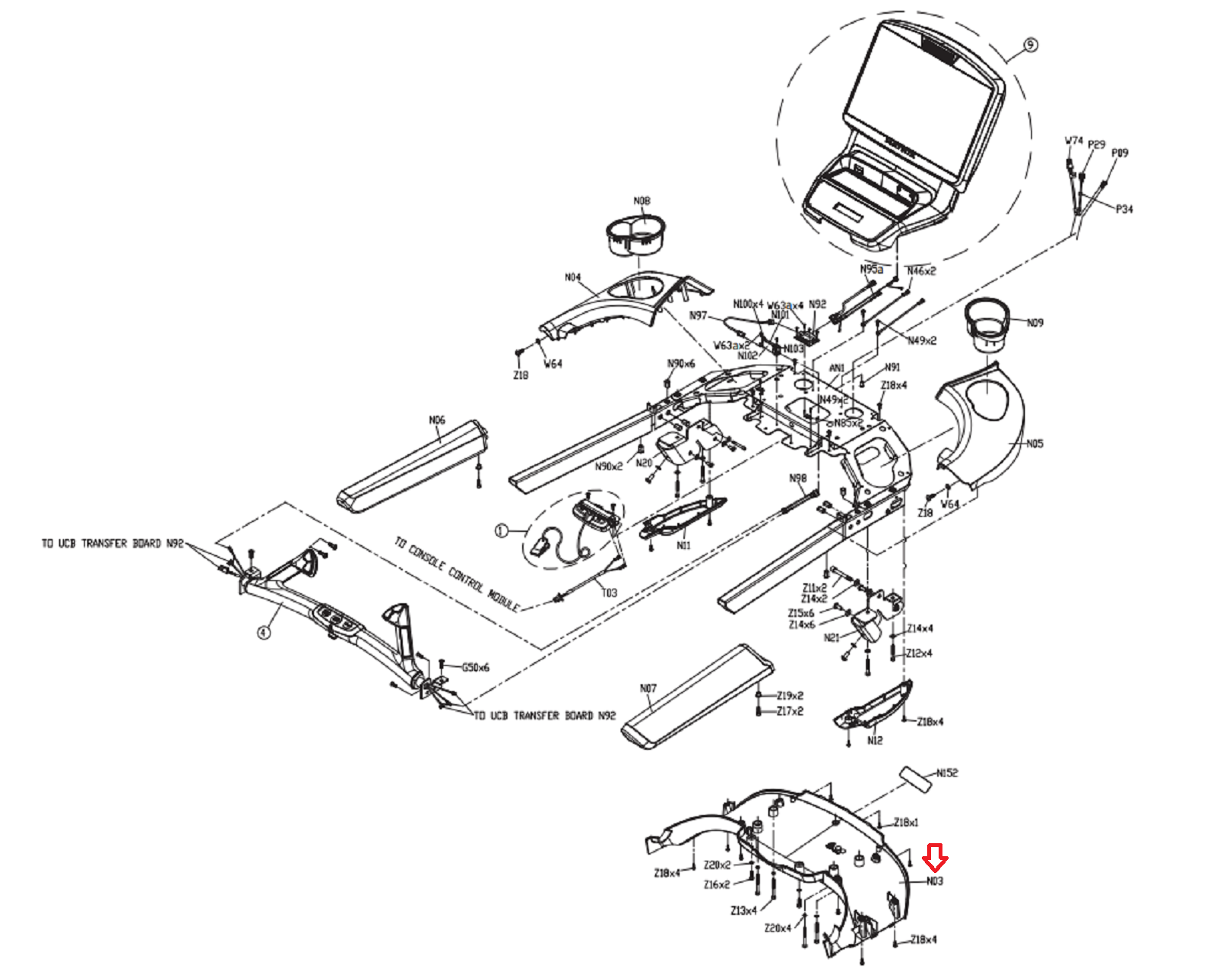 Matrix Fitness T7xi-03 - FTM501G Treadmill Bottom Console Cover 0000084596