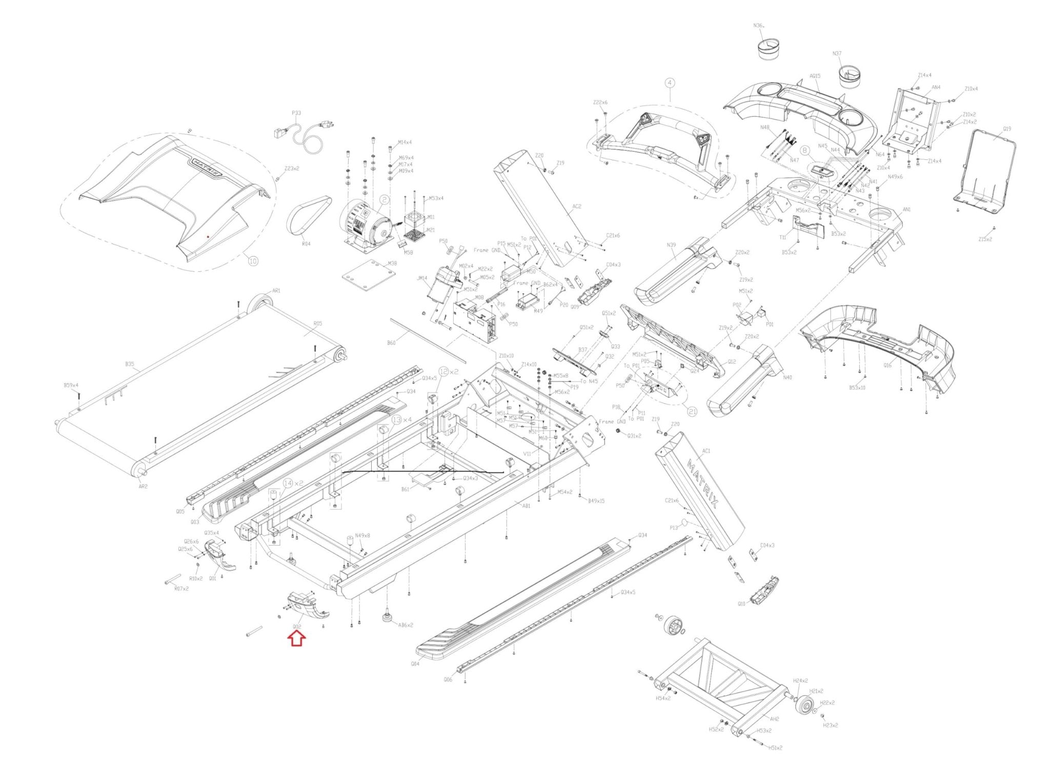 Matrix Fitness TM538 TM750C Treadmill Right End Cap 1000433954