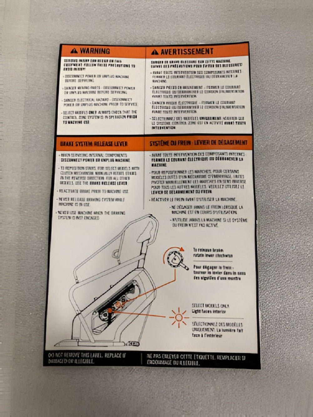 Matrix Fitness CS35 CS34 CS35G Stepper Step PVC Warning Label 1000424575