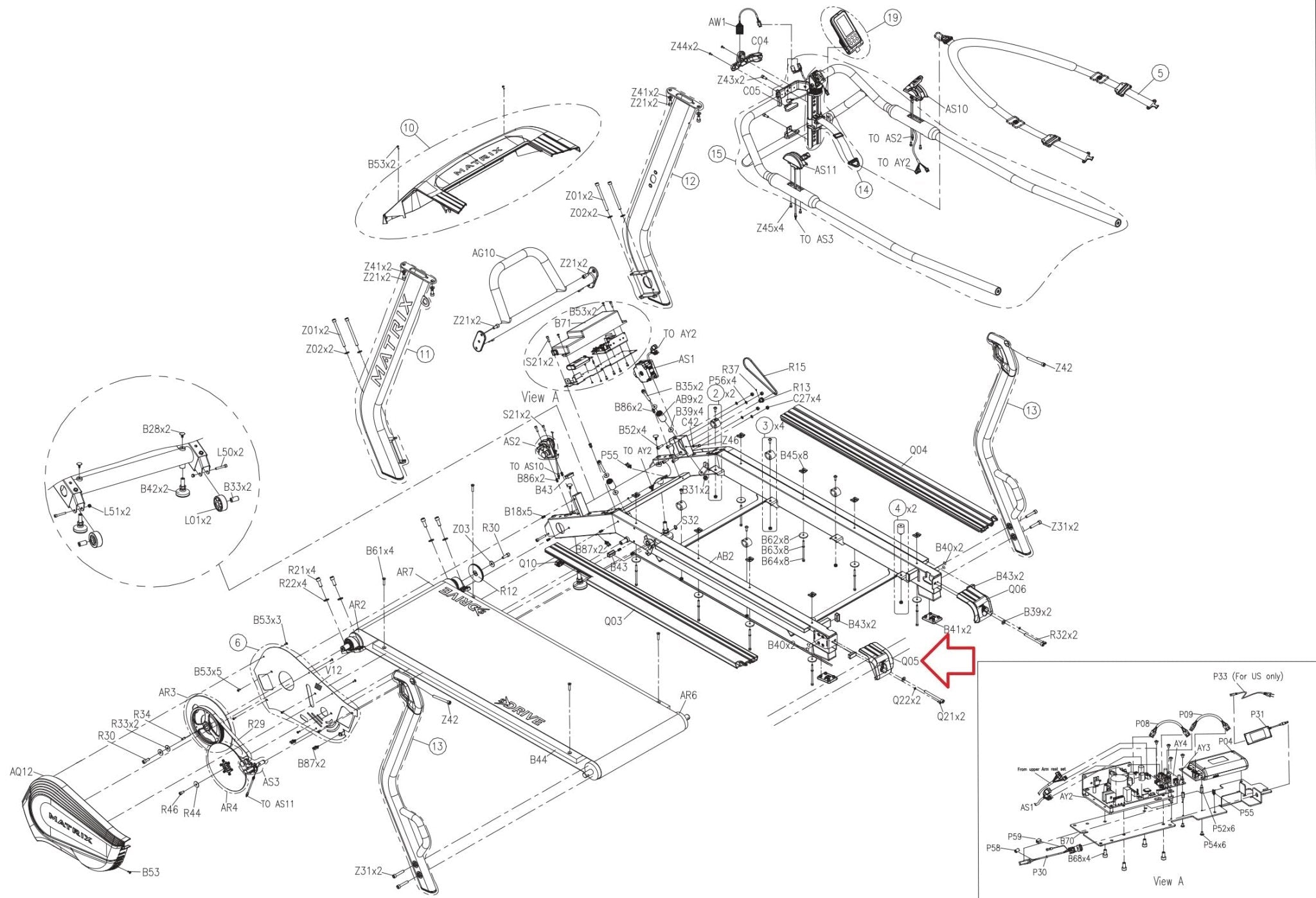 Matrix Fitness TM529 TM533 TM535C TM534 Treadmill Left Rear Roller End Cap 1000365848