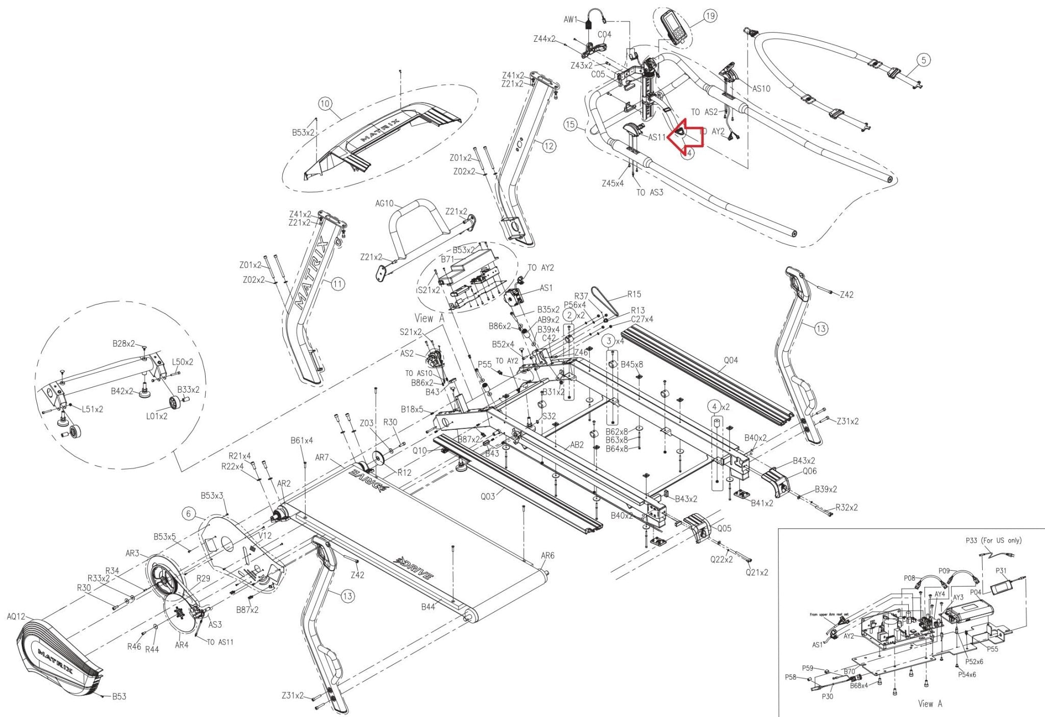Matrix Fitness TM533 TM534 TM535C Treadmill Temsion Knob Set 1000435514-hydrafitnessparts