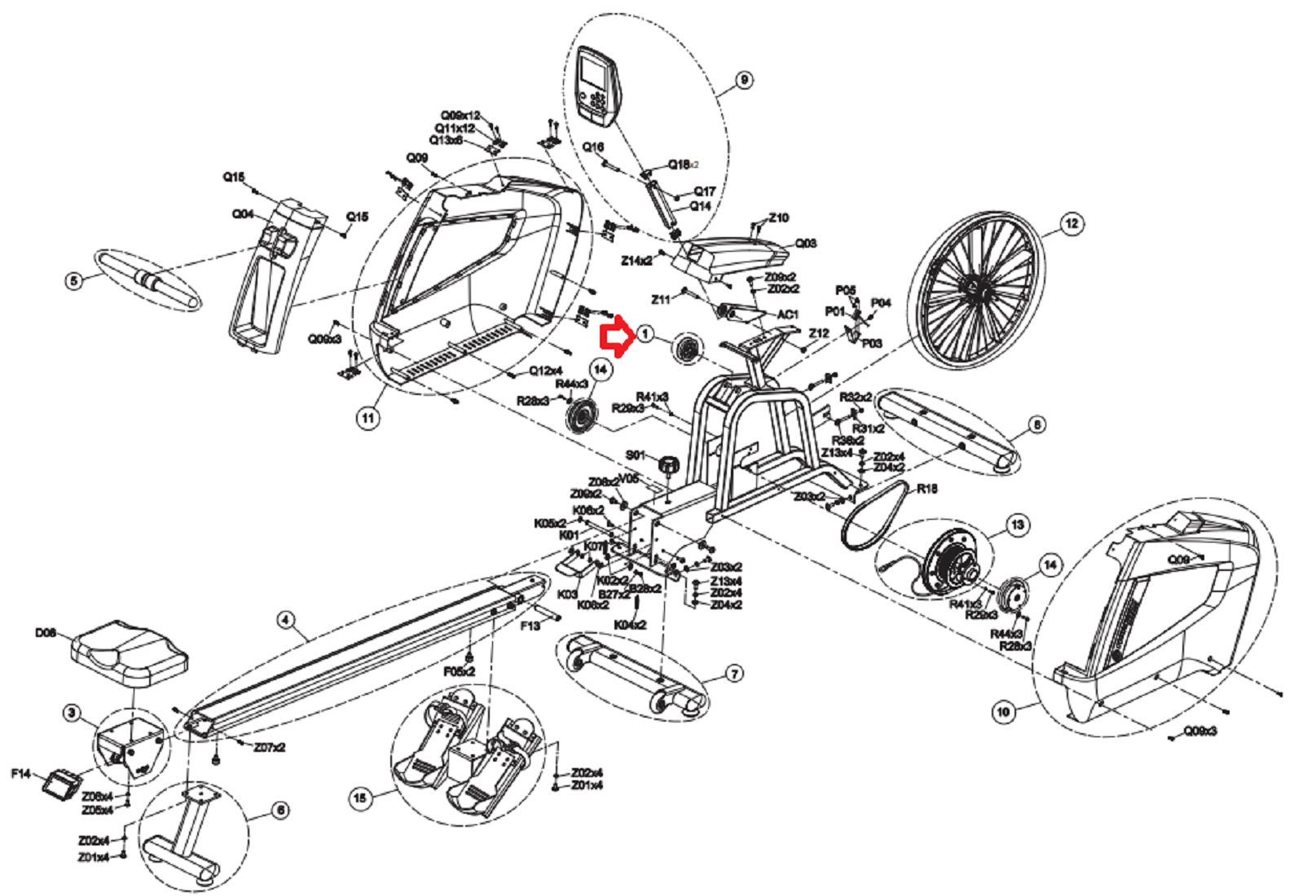Horizon Fitness Oxford 5 - AR50B Rower Idler Set Semi Assembly 1000300217
