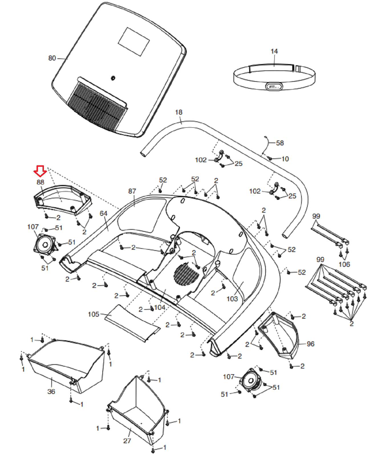Nordictrack Epic Proform Treadmill Left Speaker Back Cover 319148