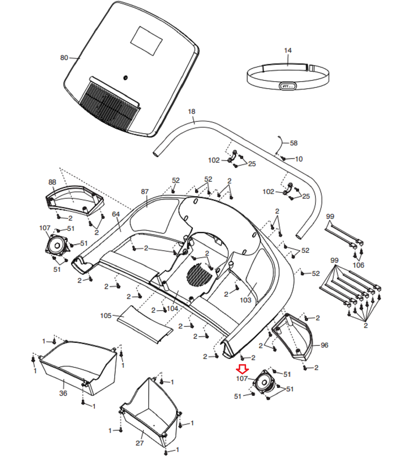 Nordictrack Proform Epic C900 C900i T 13.5 800i Treadmill Speaker 353374