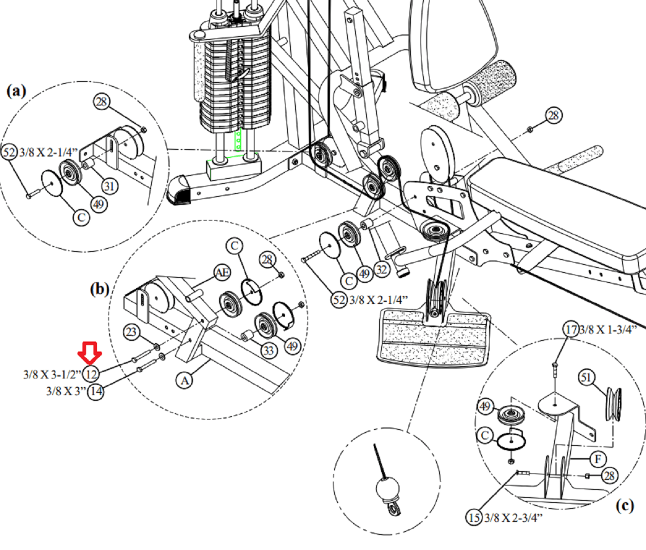 Parabody GS6-103 GS6-104 GS6-105 Home Gym Hex Bolt 3/8-16x3.5" ACUDA1E03831216NB