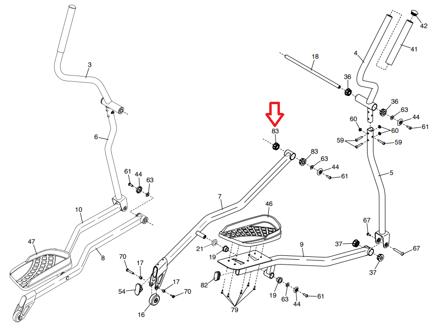 Gold's Gym HealthRider Proform Elliptical Upright Leg Pedal Bushing 363313