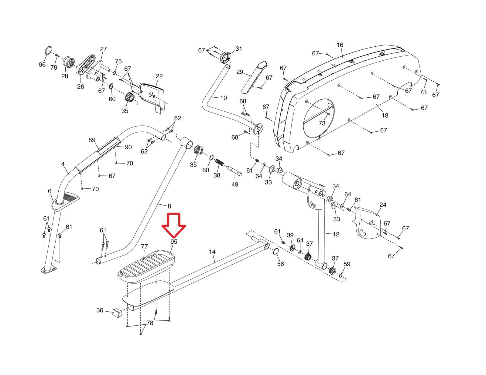 Proform 14.0 MME PFEL580150 Elliptical Left Pedal MFR- 349542 & 370120