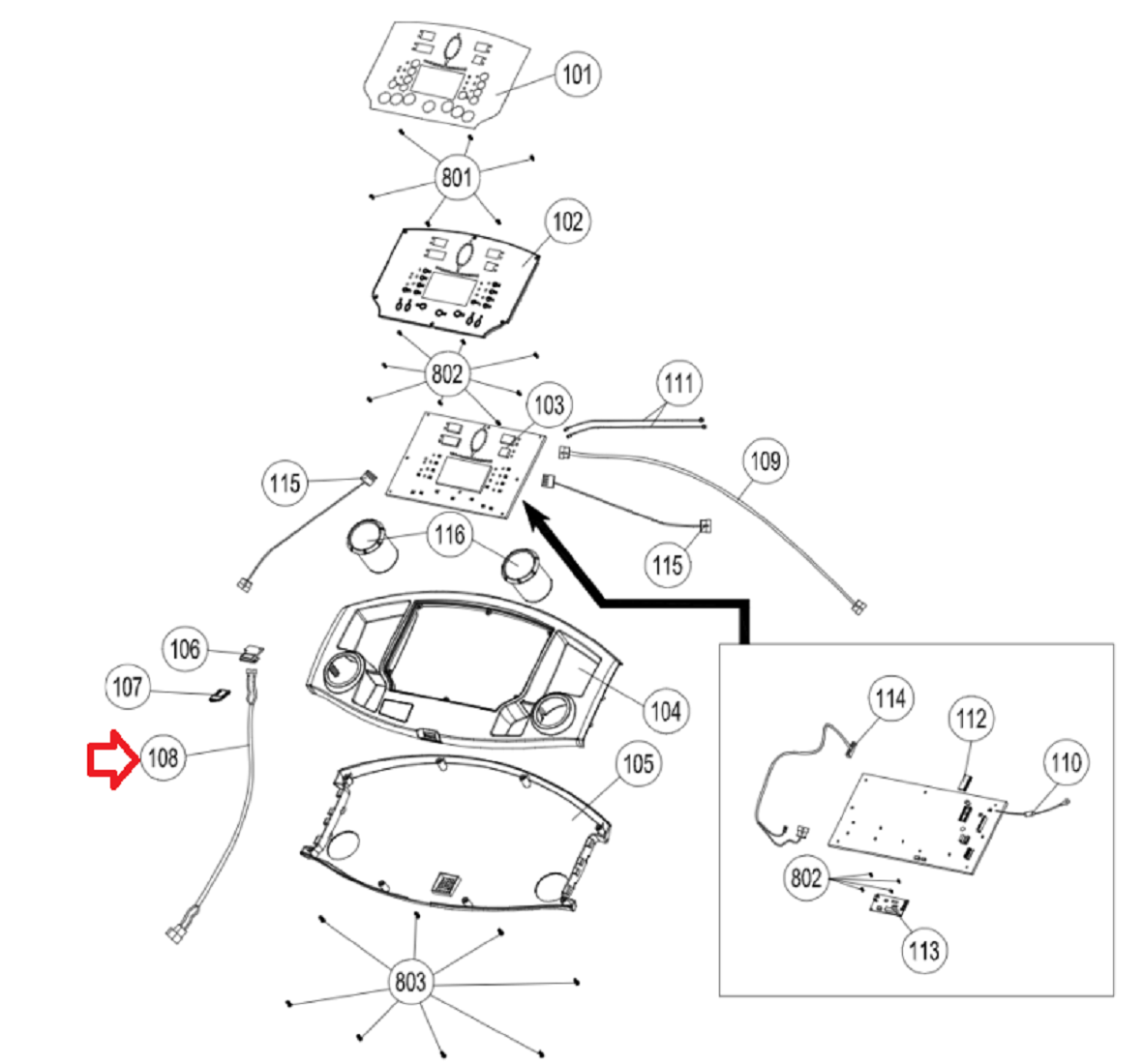 Smooth 9.45ST Motorized Treadmill Safety Key Upper Wire Harness 9.45ST-108