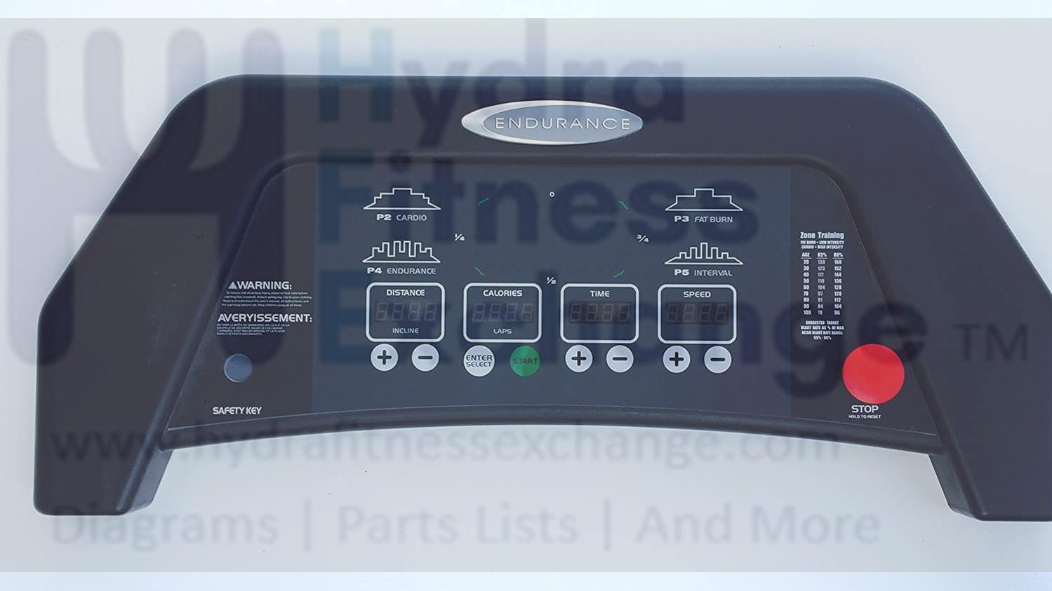 Endurance Treadmill Upper Display Console 5k Panel Full Assembly- Good Condition, 30 day guarantee.