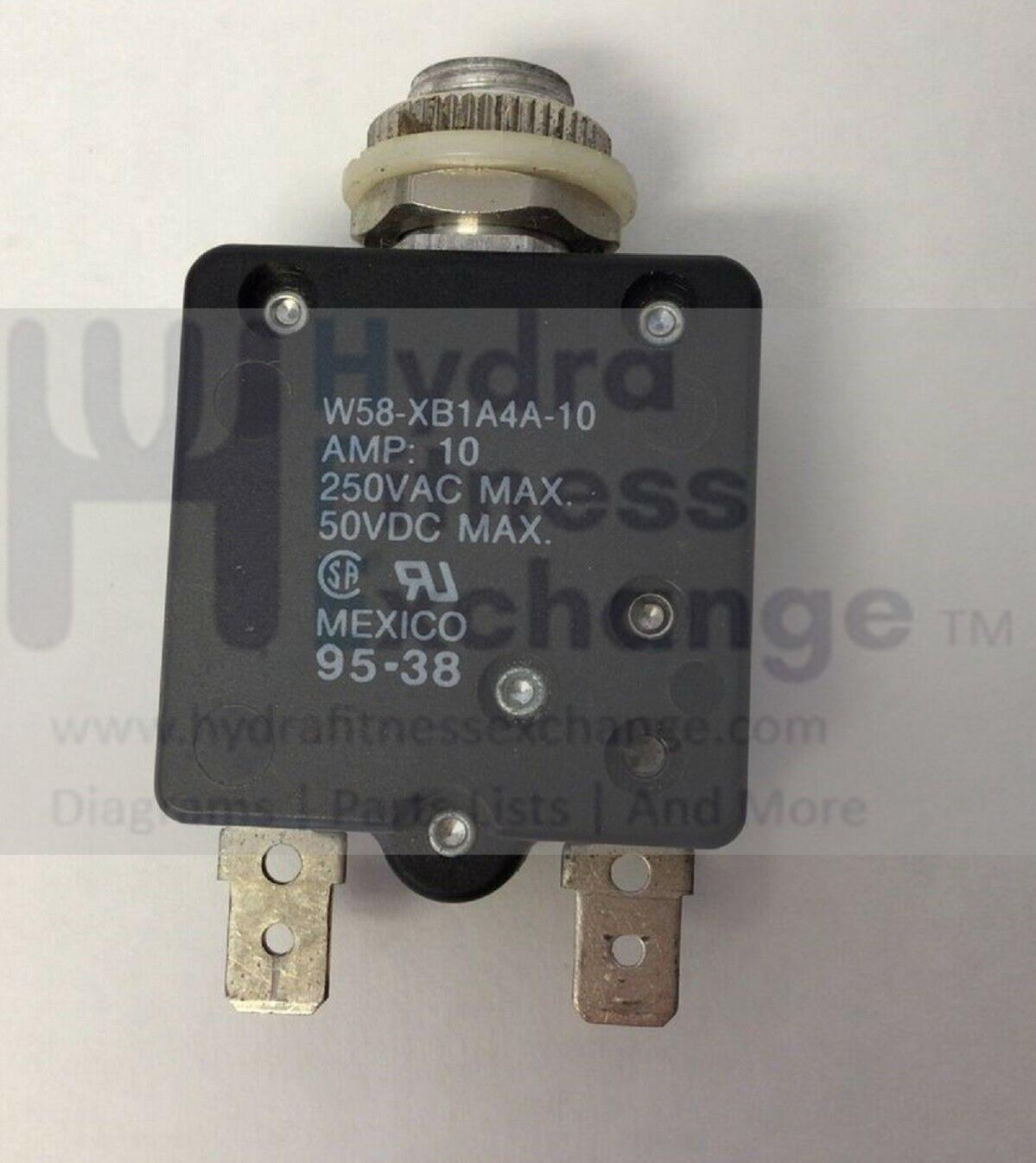Spirit Fitness 225PH 776p STS FOLDUP Treadmill Power Entry Circuit Breaker 10A W58-XB1A4A-10