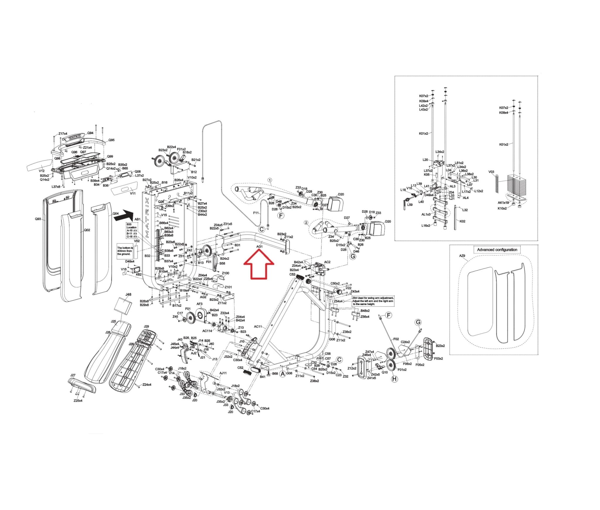 Matrix Fitness G7GM117 GM117U GM217B G7 - S23B Strength System Upper Connecting Tube Set Iced Silver 1000416462 - hydrafitnessparts