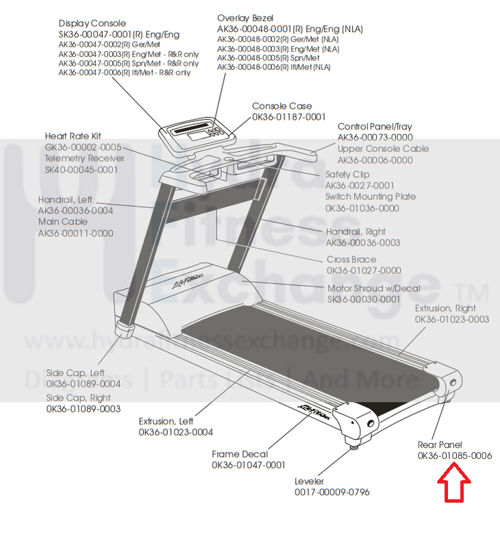 Life Fitness Treadmill Rear Cover End Cap 0K36-01085-0006