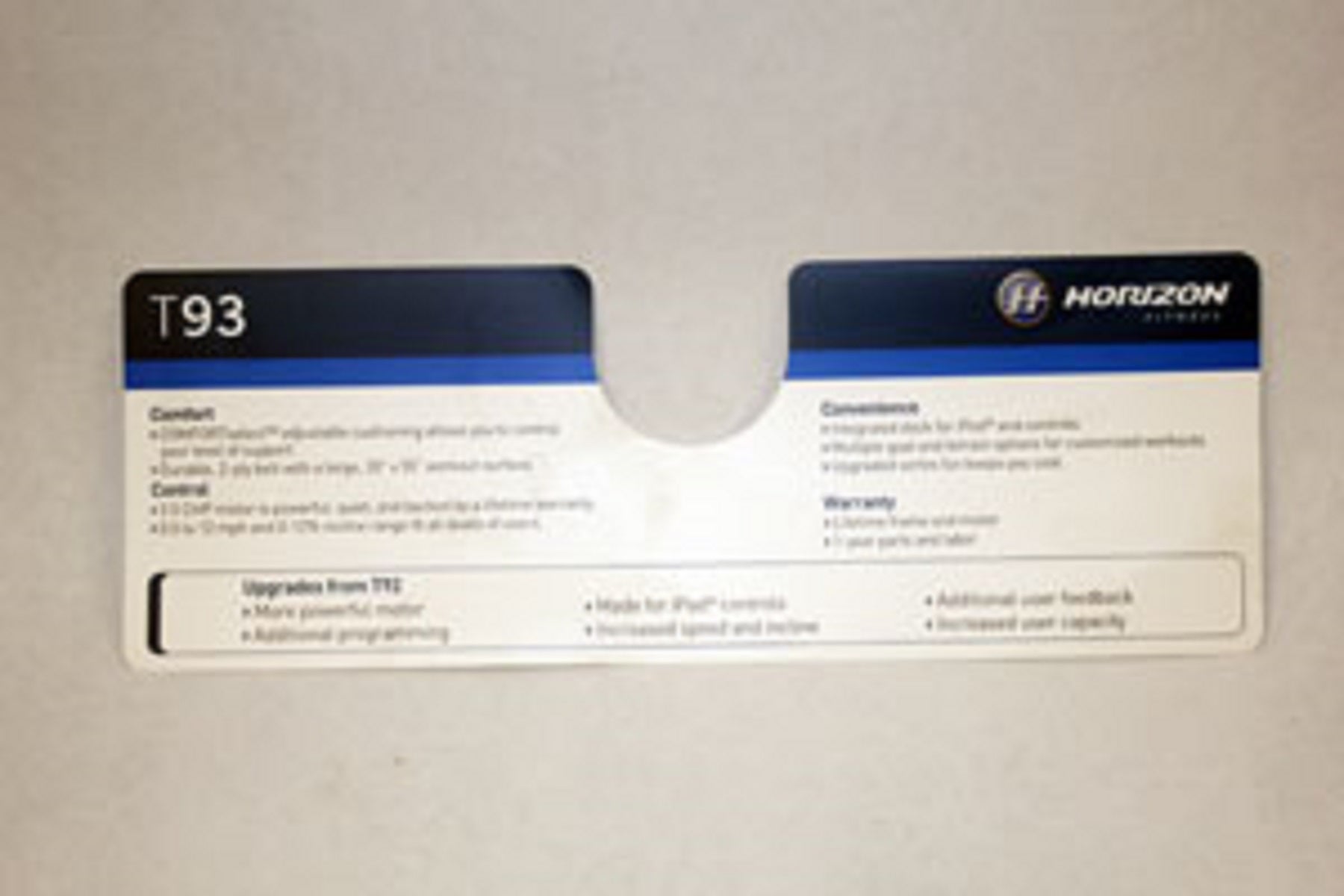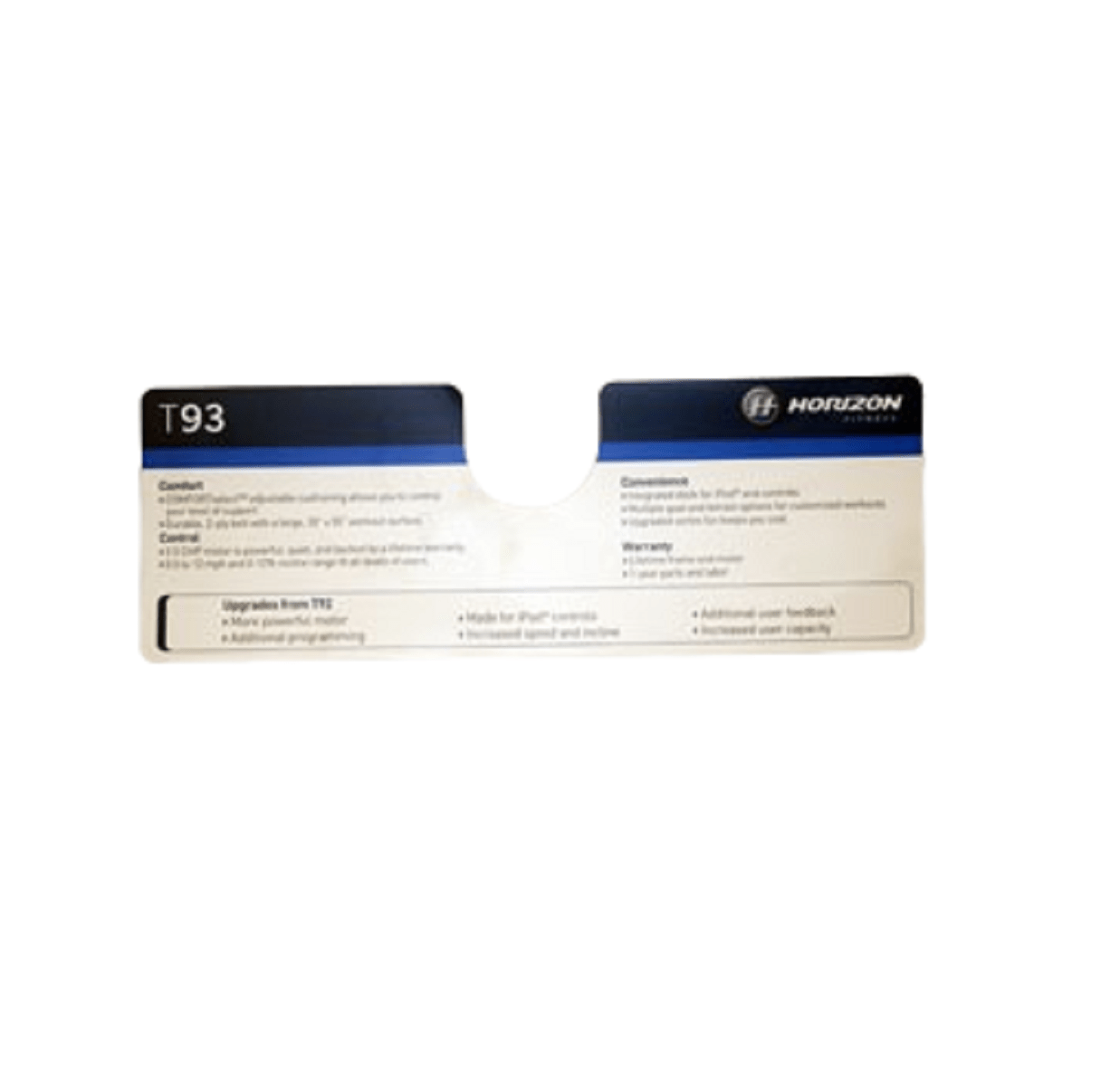 Horizon Fitness T93 Treadmill Console Sticker 103207