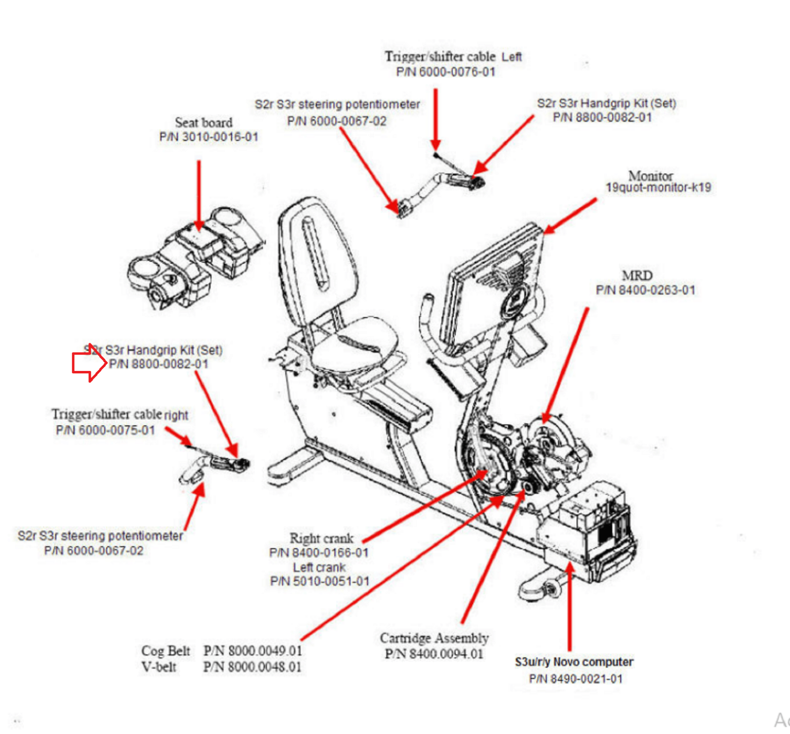 Expresso Fitness S3R WIN Stationary Bike Right Control Handlebar 8800-0082-01