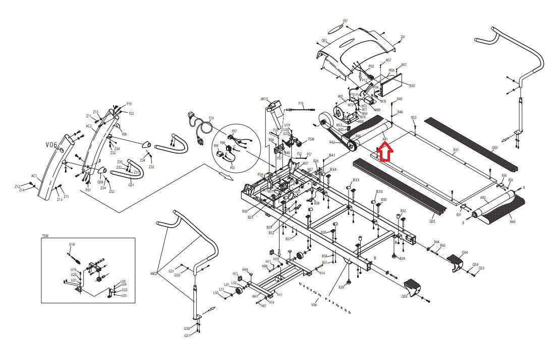 Horizon Vision Fitness Treadmill Front Rear Roller 014123-F