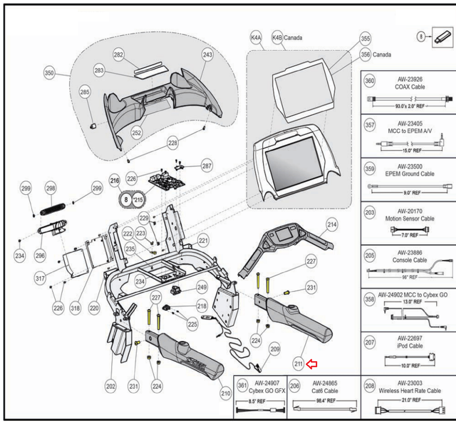 Cybex 770T 790T 625T Treadmill Right Handrail Primary Assembly AX-22467