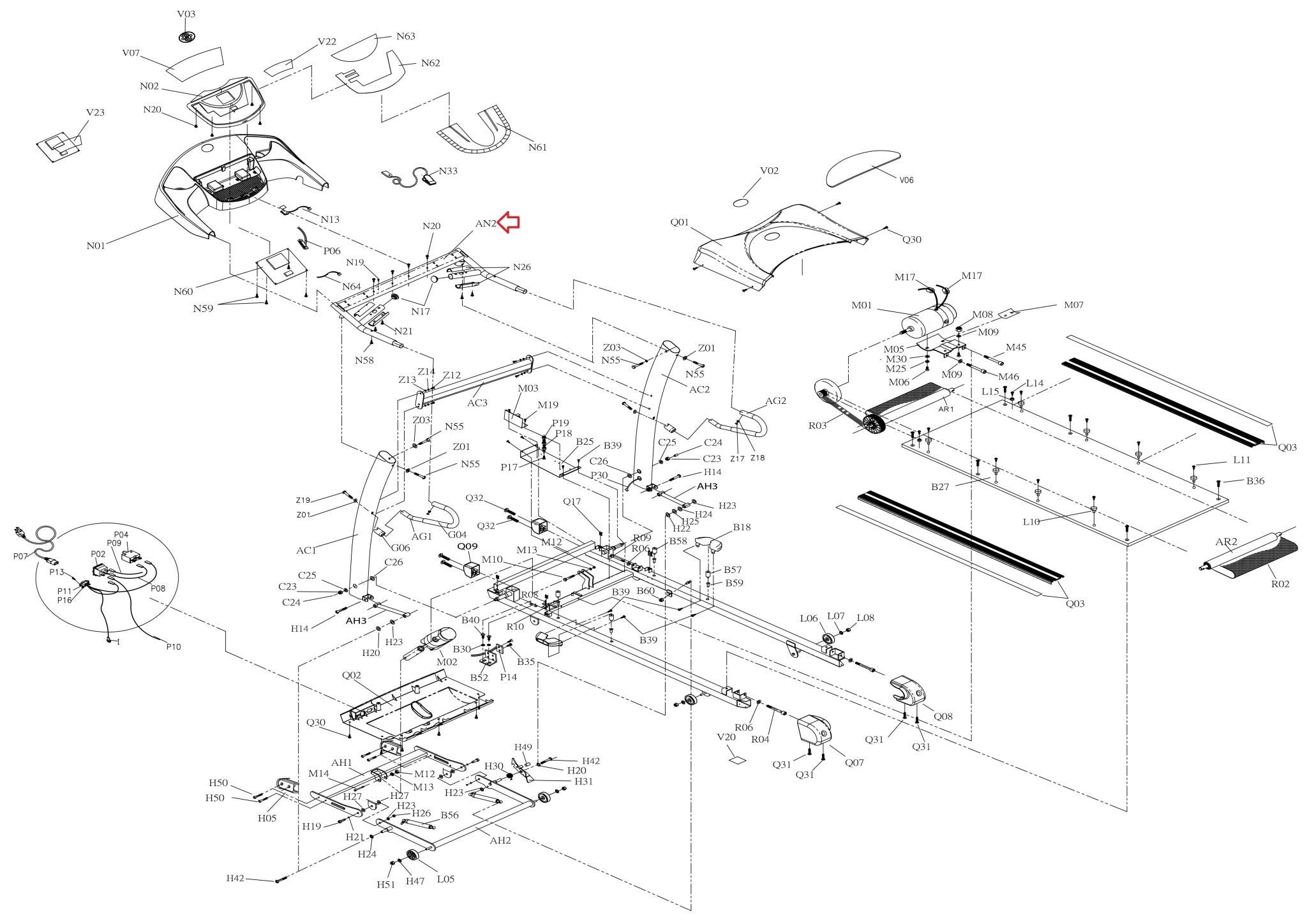 Horizon Fitness TM198 Treadmill Console Frame Set 039045-Z