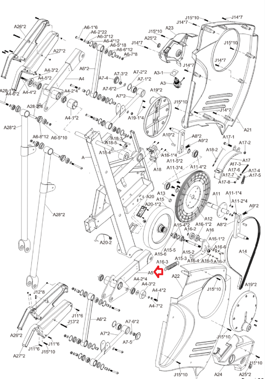 Lifecore VST-V4 Elliptical Right Oscillating Axle Base Weldment A5