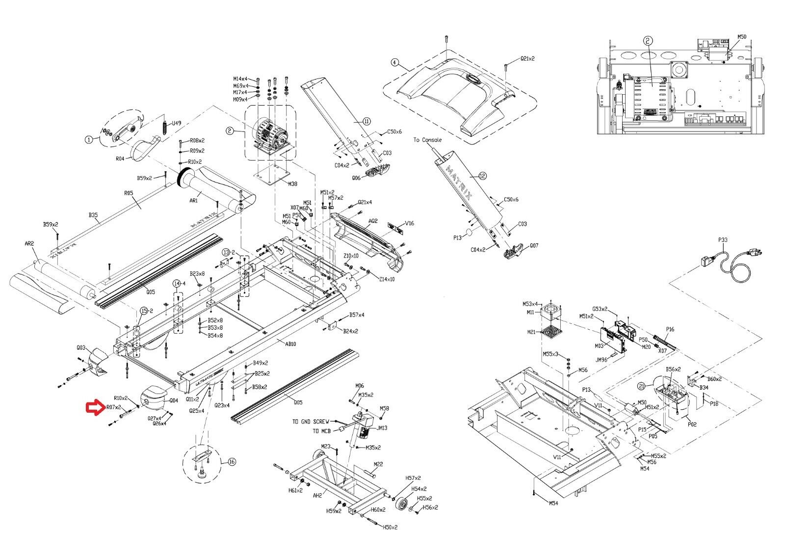Matrix Commercial Treadmill Round Hex Socket Screw M10 - 1.5P x 100L 004495-00