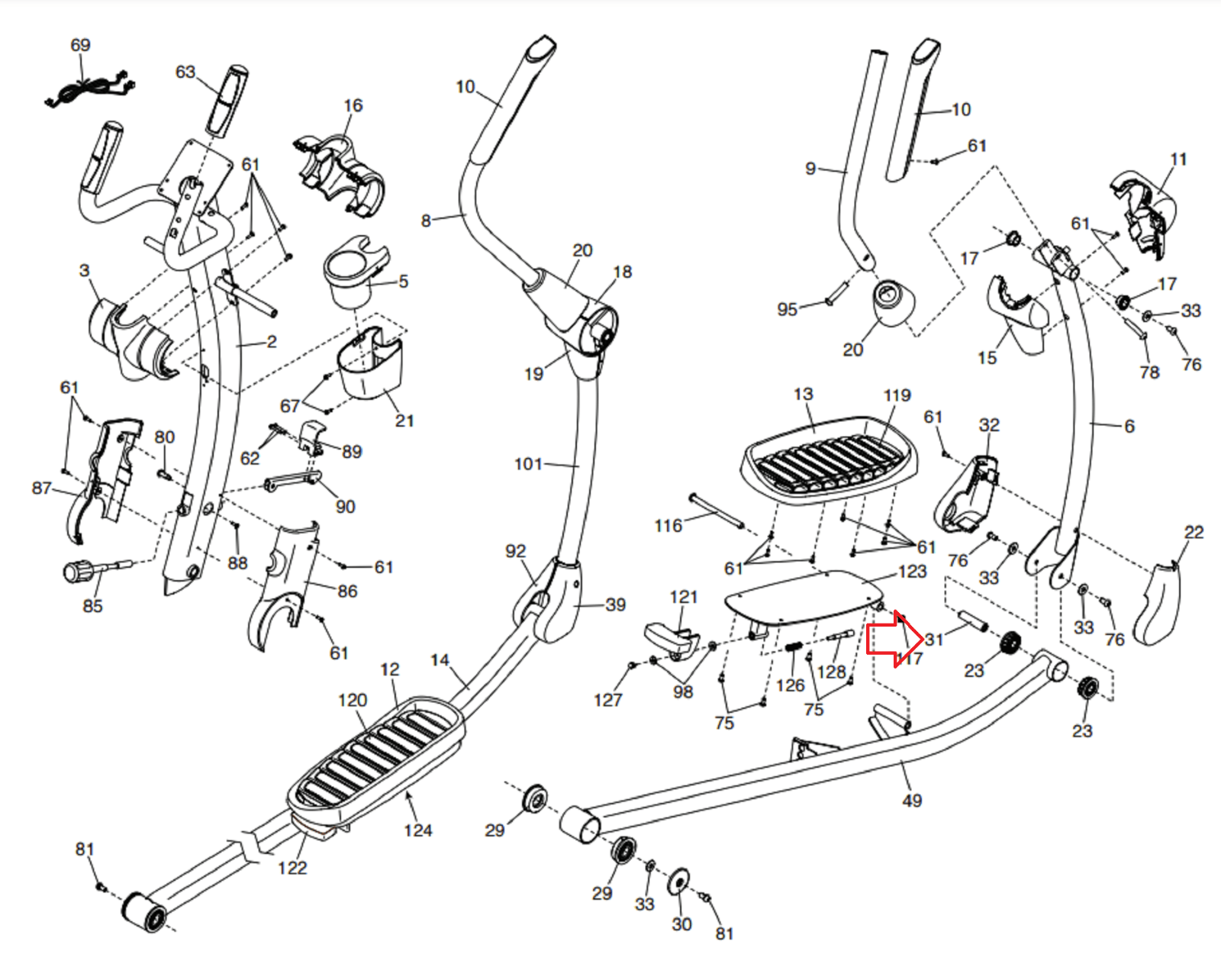 NordicTrack HealthRider Proform Elliptical Foot Pedal Arm Axle 345936