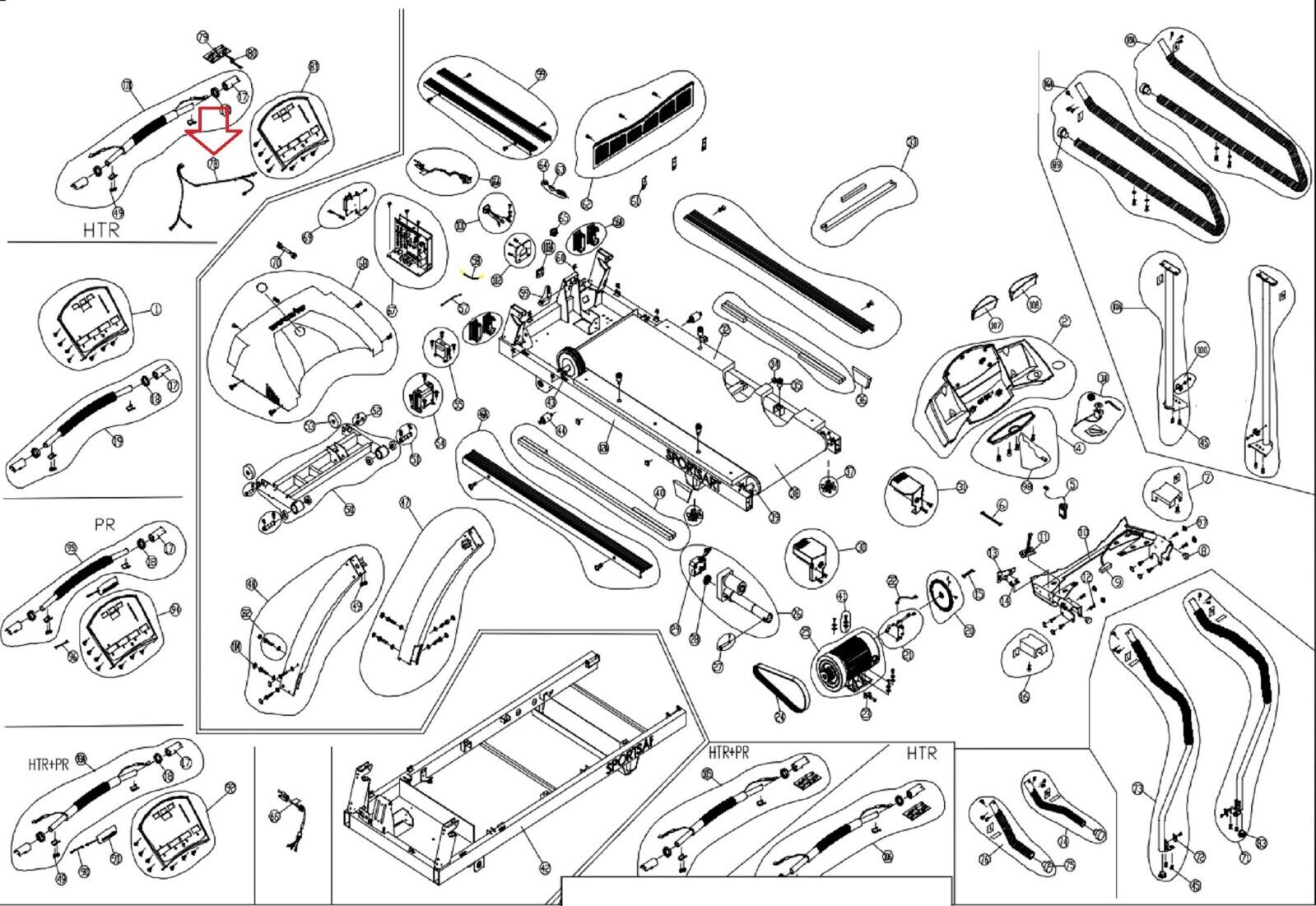 SportsArt Treadmill HTR Handlebar to PCB Wire 6300-78