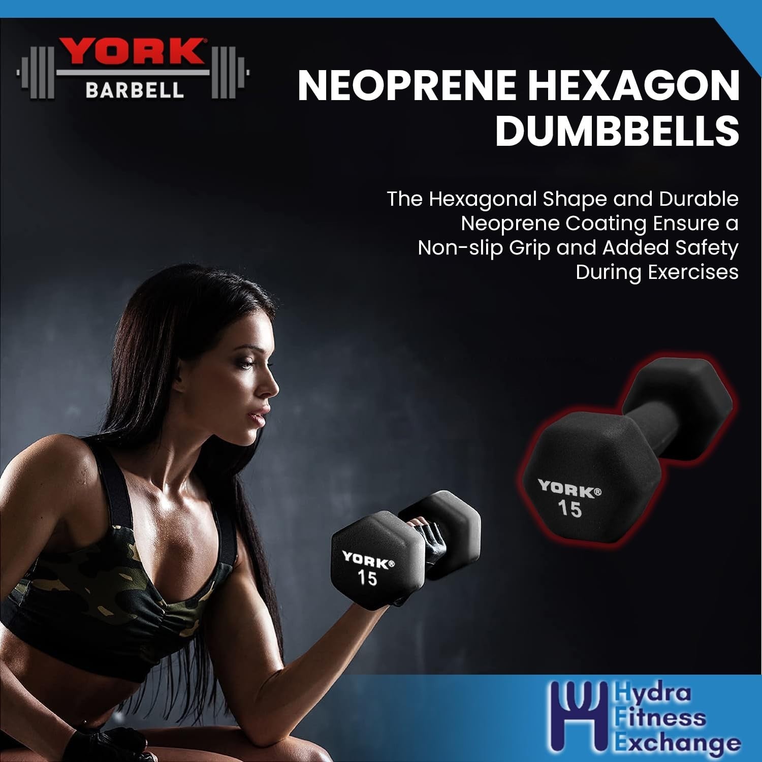 Key Features of York Barbell Neoprene Hexagon Dumbbells: