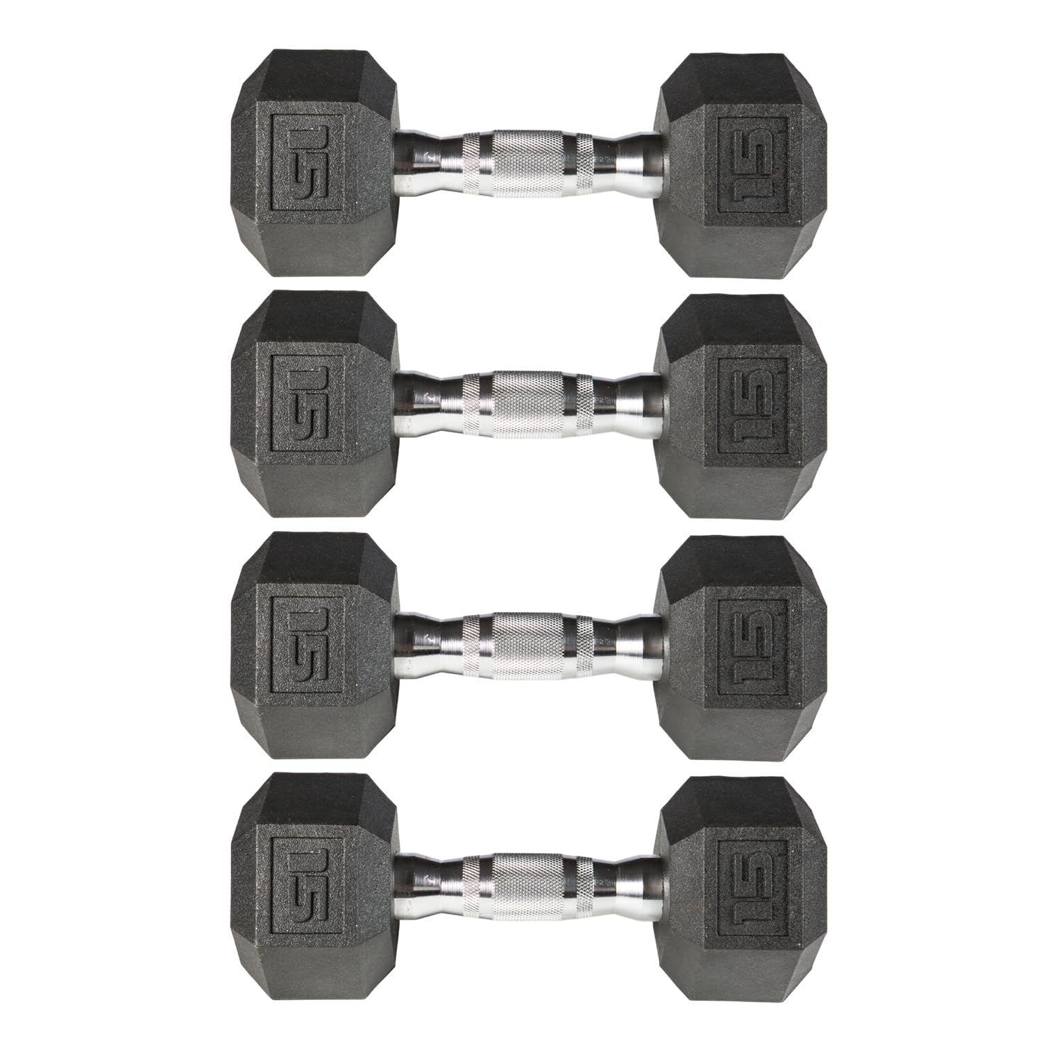 - 15lb Dumbbells Available in Single, Pair & 2-Pair Set
