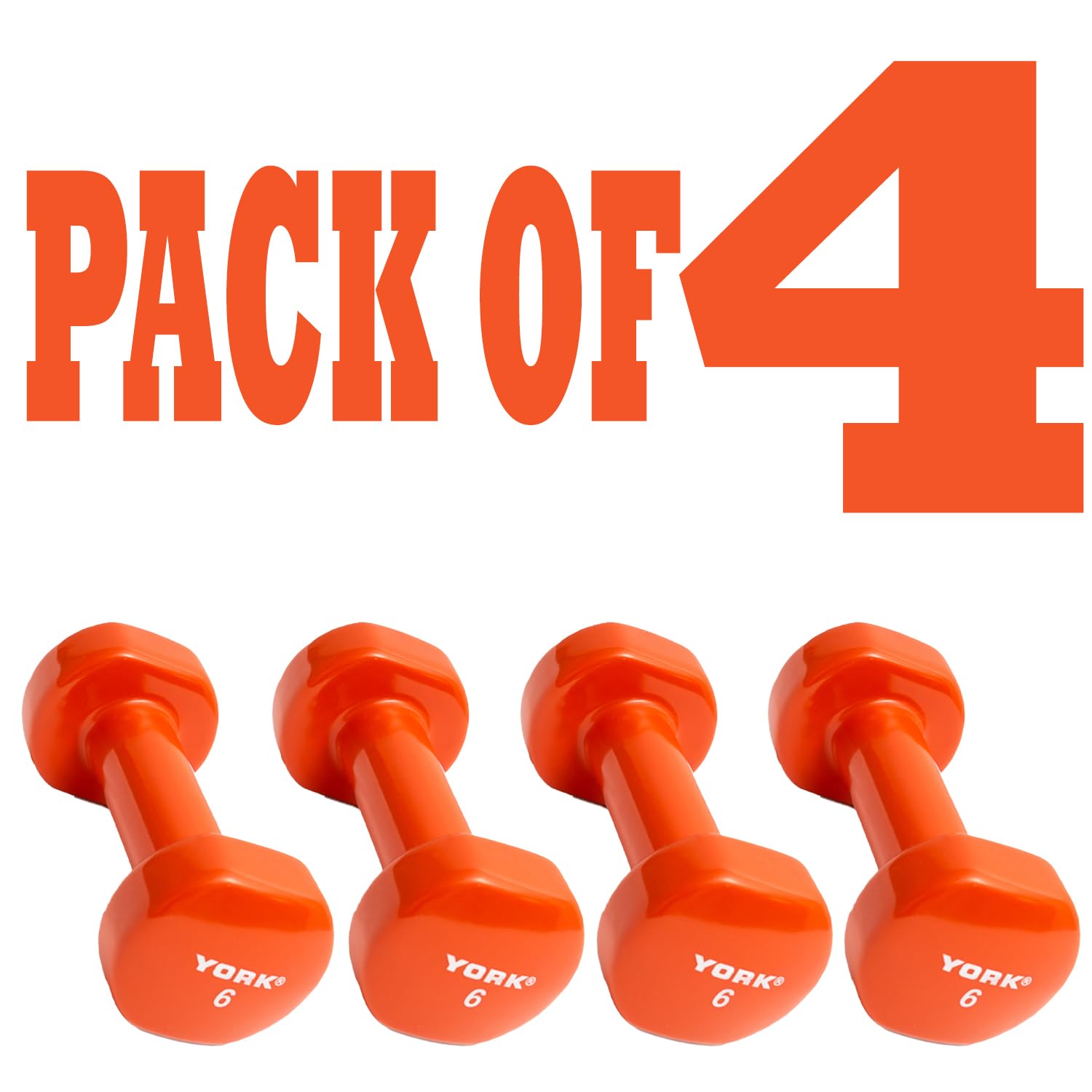 York Barbell Vinyl Coated Fitbell Dumbbell (6LB, Pack of 4) | Durable Anti-Roll Anti-Slip, Color Orange | Ideal for Arm Rows Squats Chest Presses Bicep Curls Walking Jogging & Yoga